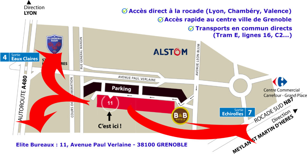 L’un des grands atouts d’Elite Bureaux est son emplacement stratégique à Grenoble. Situé au 11 Avenue Paul Verlaine (38100), notre centre d’affaires bénéficie :