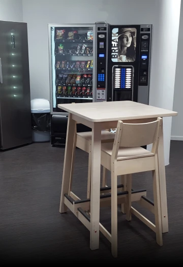 - Cafétéria/coin repas avec micro-ondes, frigo, distributeurs de boissons...